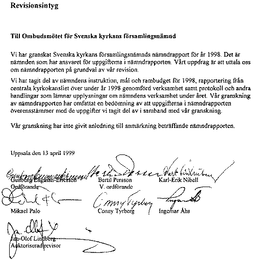 De svårigheter som förra årets bokslut gjorde tydligt i form av stora överskott har inte alls funnits på samma sätt under det här året. Föregående år fanns många vakanser och byten av anställda och själva den förändrade organisationen krävde kraft. 1998 har varit ett bra verksamhetsår där frukterna av målarbetet, integrationen, satsningen på relationen till stiften redan kan börja anas.